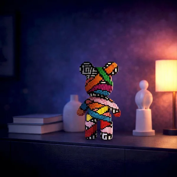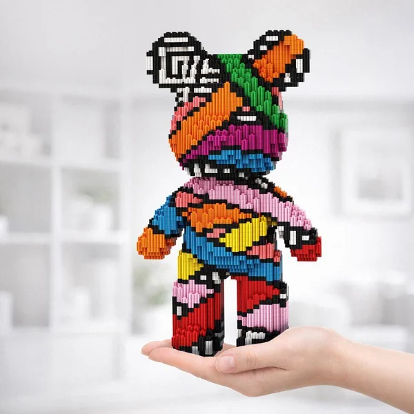 Comprend 2991 microbriques colorées, 1 maillet en plastique, 1 notice. Ce kit permet de construire un ours en 3D d’environ 32 cm, entièrement formé de micro-briques pour un rendu original et décoratif. Il mêle le plaisir du montage et un résultat visuel type sculpture, parfait comme objet déco ou cadeau créatif. L’assemblage développe la patience et la créativité. Durée : 8 heures. Idéal pour les passionnés de jeux de construction ou de DIY (Do It Yourself en français Faites-le vous-même).