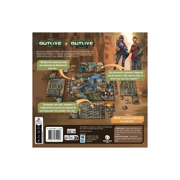 Outlive est un jeu de société expert accessible dès l’âge de 14 ans pour des parties de 60 minutes environ jouable de 2 à 4 joueurs. Il est édité par La Boîte de Jeu.