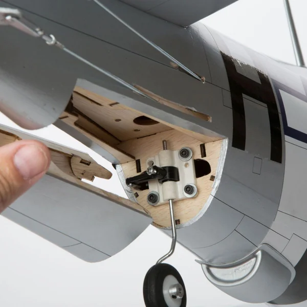 Les tringleries de la roulette de queue, de la profondeur et des volets sont masquées pour une finition soignée. Une trappe à l’arrière du fuselage permet d’effectuer les réglages des tringleries de profondeur et de la roulette.