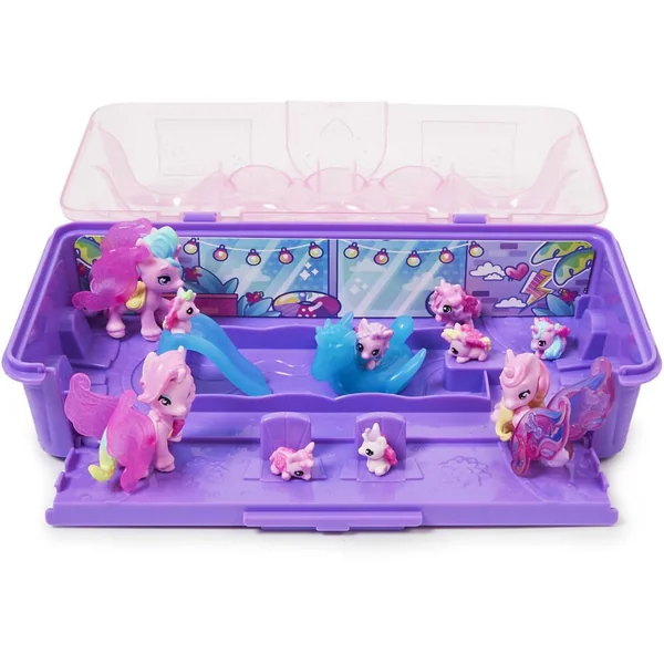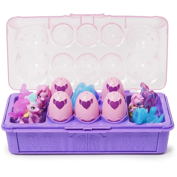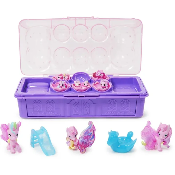 Les nouvelles figurines Hatchimals à collectionner avec des familles à recomposer. Dans chaque œuf se cache un Hatchimals, une petite créature mignonne. Lorsqu’on réchauffe le cœur de l’œuf, il change de couleur pour indiquer qu’il est temps de faire éclore le Hatchimals. L’enfant craque manuellement son œuf pour découvrir quel Hatchimals se cache à l’intérieur. Boîte comprenant 10 figurines Hatchimals à collectionner dont 2 figurines Parent, 1 ado, 3 Enfants et 4 Bébés ainsi que 2 accessoires. Boîte plastique avec sur-pochette. A partir de 5 ans.
