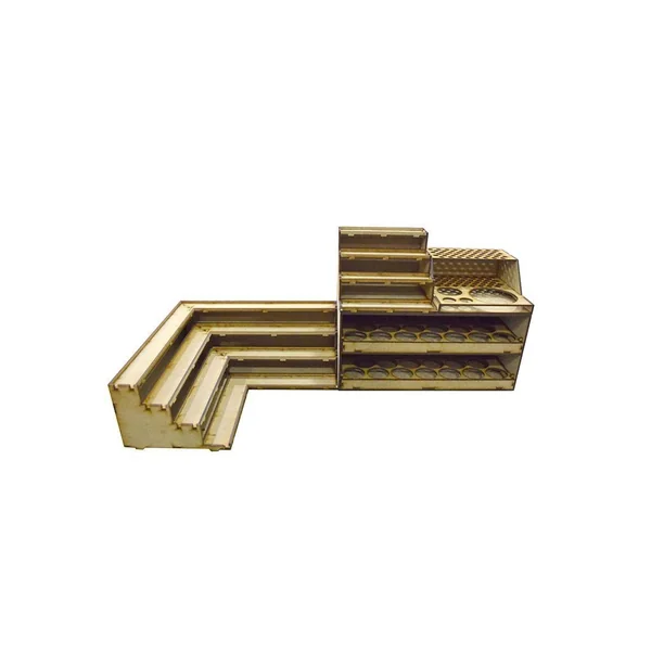• 1 module d’angle de 30cm x 30cm pouvant recevoir les différents pots de peinture les plus utilisés sur le marché (Citadel, Vallejo,…)
