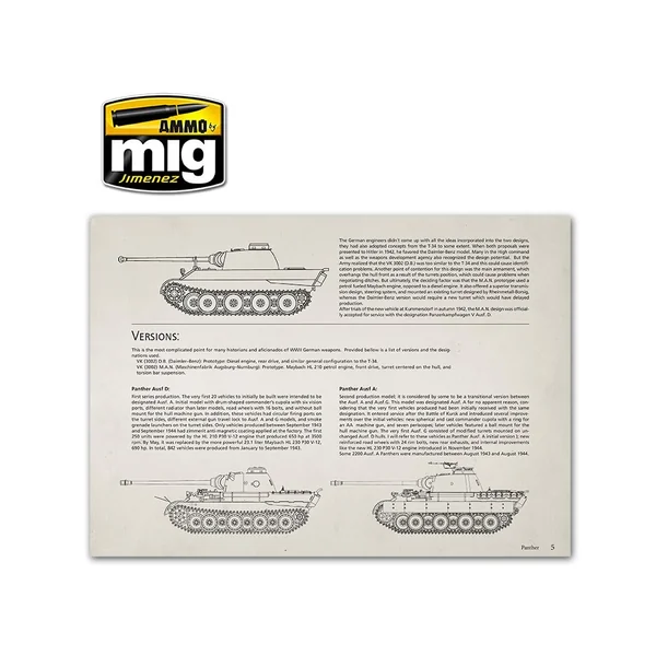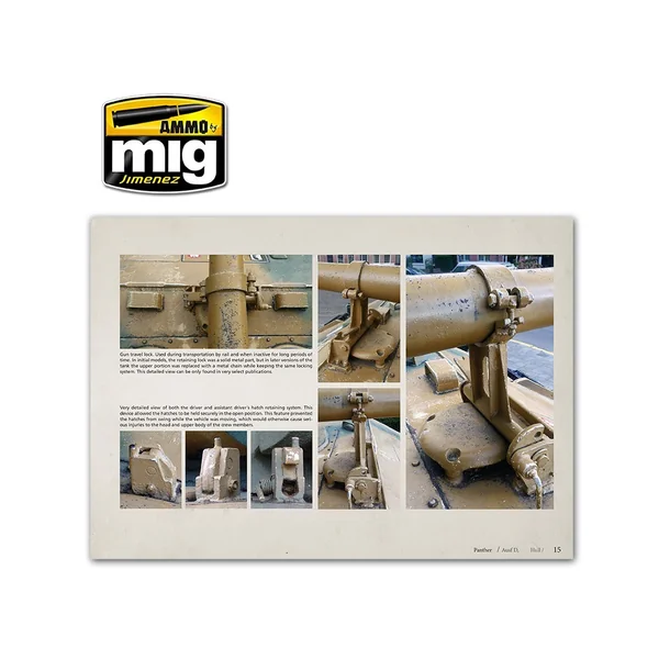 Guide couleur complet avec les informations sur les couleurs intérieures et extérieures utilisées sur les Panther. 29 profils détaillés colorés avec les camouflages et marquages de toutes les versions du Panther.62 pages, avec plus de 154 photographies de haute qualité incluant des détails rarement vus.