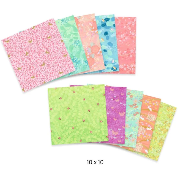 Une multitude de papiers aux motifs variés et poétiques pour réaliser vos pliages préférés. Avec 3 pliages aux couleurs du printemps expliqués pas-à-pas.
