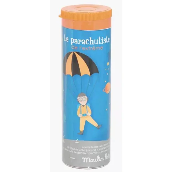 Lance le parachutiste en l’air, le parachute se gonfle comme un vrai et vole jusqu’à son atterrissage. Celui ci est orange comme son propriétaire, il atterrit sur une planète étrange, au beau milieu des étoiles !