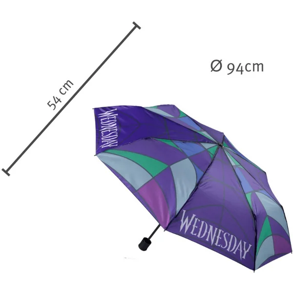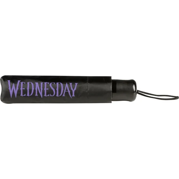 Un parapluie pliable au motif sombre et élégant de Wednesday est idéal pour un sac à dos ou un sac à main.