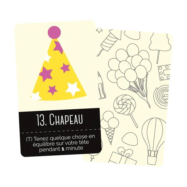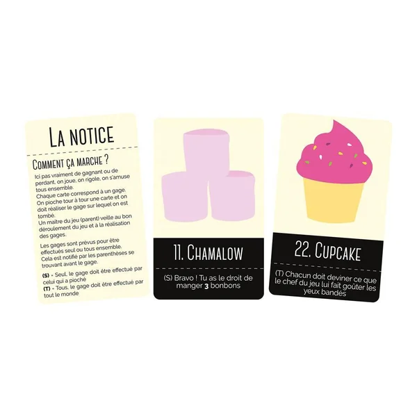 Le concept est simple et très efficace : à chaque carte correspond un gage à réaliser. Par exemple, si l’enfant tire la carte « fusée », il doit raconter l’histoire du 1er vol spatial d’un petit pois.Les 54 cartes de chaque Kit sont la promesse de moments de partage entre enfants et parents… et d’une certaine tranquillité pour ces derniers !