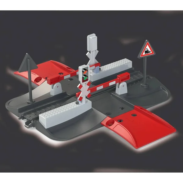 Passage à niveau avec fonctions lumineuses et sonores, signalisation croix St André, barrières manuelles.