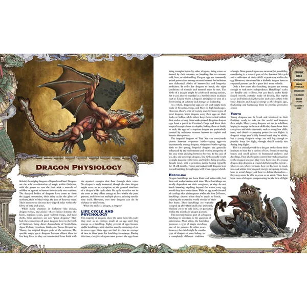- Un historique et des traditions étendus sur les dragons, incluant des informations sur leur physiologie.