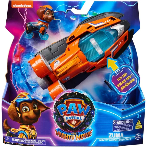 Un véhicule officiel du film La Pat’ Patrouille – La réplique exacte du véhicule qui apparaît dans le film. Place la figurine dans le véhicule pour déclencher des effets sonores et lumineux et partir en mission – Véhicule d’environ 15 cm de long. Figurine amovible de Zuma incluse – Fonctionne avec 3 piles LR44 fournies.
