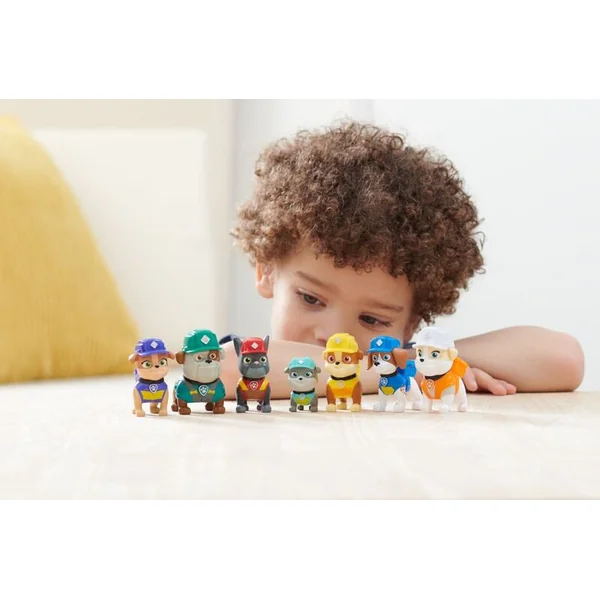 Préparez-vous à un véritable chantier avec votre chiot préféré Rubble et sa bande de chiens constructeurs ! Cet incroyable ensemble est le moyen le plus rapide de rassembler tous vos chiots préférés que vous connaissez de la série Rubble et sa bande – il contient Rubble, Wheeler, Mix, Charger, Motor, tante Crane et grand-père Gravel ! Chacune des figurines mesure plus de 5 cm de hauteur et est habillée dans les uniformes officiels de Rubble et sa bande.