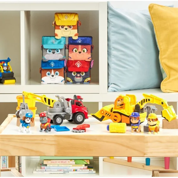 Les enfants adoreront jouer avec leurs chiots préférés, en laissant libre cours à leur imagination et en unissant leurs forces avec leurs parents pour réaliser ensemble des projets de construction de la série, puis les enrichir de leurs propres idées ! Encore plus de plaisir du monde de Rubble et sa bande vous attend avec le camion de chantier, les figurines, les ensembles de sable cinétique Build-it ou l’ensemble avec la grue Bark Yard, ainsi que l’ensemble de l’atelier de Rubble, qui vous permettront de construire votre propre chantier directement chez vous (vendus séparément) ! Donnez vie à la série Rubble et sa bande avec l’emballage cadeau des figurines Rubble et sa bande !