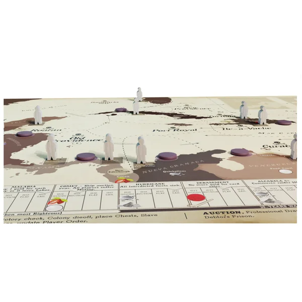 Pax Hispanica est un jeu asymétrique de batailles navales et de trahison. Les mécanismes sont similaires à ceux des autres jeux Pax, avec un tableau, un marché, une vente aux enchères à l’aveugle, et 4 choix de carrière et de victoires différents.