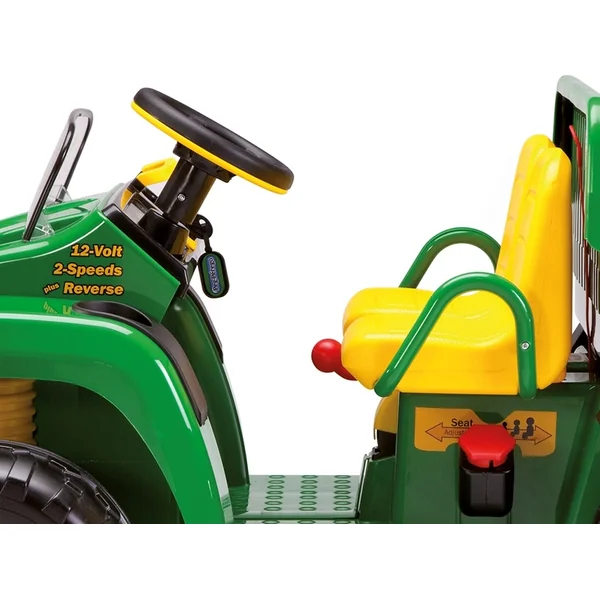 L’un des modèles originaux de Peg Perego est issu de la famille John Deere. Il s’agit d’une copie fidèle du HPX du célèbre fabricant américain. Ce véhicule utilitaire électrique avec une batterie rechargeable de 12 volts est dans une couleur verte et jaune inimitable, qui rend cette petite voiture unique et reconnaissable dans le monde entier.