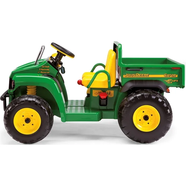 Le John Deere Gator HPX est destiné aux enfants de 3 ans et plus, qui recherchent une aventure incroyable. Le John Deere Gator HPX roule sur tous les terrains, même les plus irréguliers, et peut affronter des pentes allant jusqu’à 17 %. Il est conçu pour se déplacer à travers les champs en toute sécurité et possède une adhérence parfaite, assurée par le profil des roues combiné à une traction maximale. Il s’en sort facilement sur la pelouse et excelle par sa puissance et son agilité même sur des routes sinueuses.