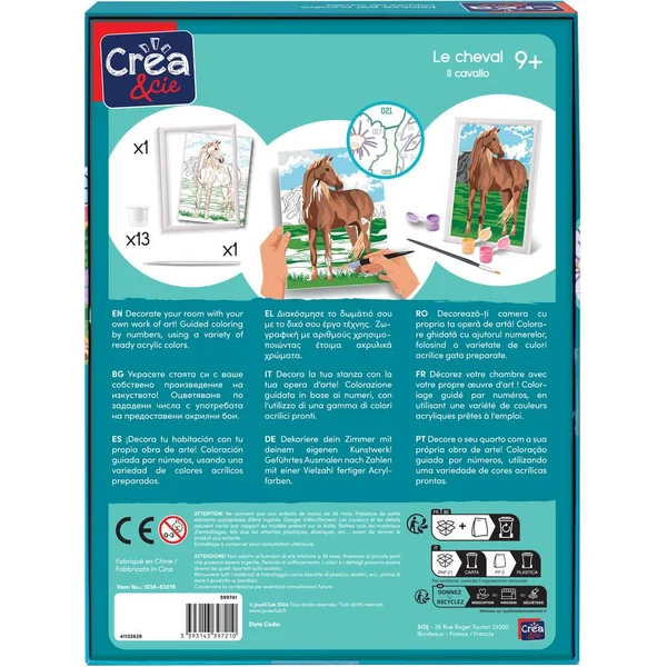 Avec les kits peinture et cadre, basés sur la technique de coloration par numéros, les enfants apprennent à colorier les différentes images avec soin et attention, améliorant ainsi leur talent artistique et développant leur motricité. Au final, ils ressentiront un sentiment de joie, de fierté et de satisfaction qui les incitera à continuer de peindre. Comprend : 13 couleurs acryliques prêtes, 1 palette, 1 carte pré-imprimée, 1 pinceau, 1 cadre de 18.5 x 25 cm, 1 manuel. Dimensions de la boîte : 20 x 4 x 26.5 cm. Décorez votre chambre avec votre propre œuvre d’art ! Coloriage guidé par numéros, en utilisant une variété de couleurs acryliques prêtes à l’emploi.