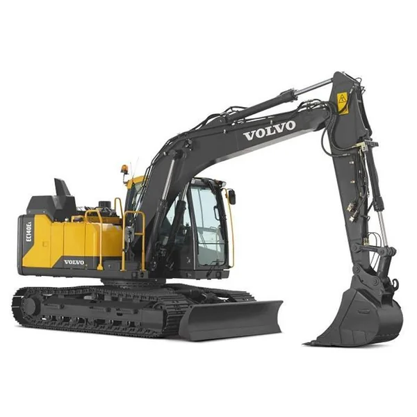 Réplique Officielle de la pelleteuse Volvo E140E en Die-Cast présentée sur platine support.
