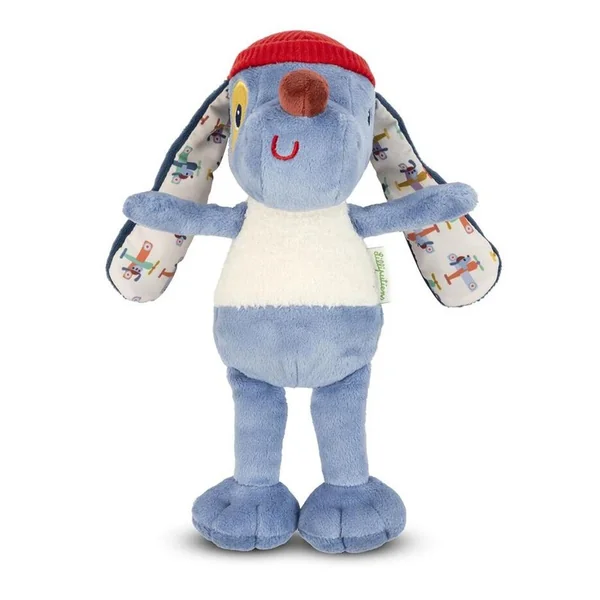 Adoptez Jules ! Cet adorable chien en peluche convient aux enfants et aux bébés à partir de 3 mois. Dans son joli coffret illustré, c’est le cadeau idéal pour une naissance, un anniversaire ou toute autre occasion de gâter un tout-petit ! Toute moelleuse et colorée, cette peluche chien se compose de différentes textures, aussi agréables à toucher que stimulantes à parcourir pour bébé : des rainures sur son bonnet rouge, des broderies en relief sur sa petite bouille, un gilet blanc super duveteux … Quant à ses oreilles, elles sont décorées à l’intérieur d’un bel imprimé avec des avions. Pourquoi ? Parce que notre Jules est un chien aviateur hors pair ! Il adore aussi le bricolage, le jardinage, et les câlins bien-sûr. Les longues oreilles et les grands pieds de Jules sont des extensions faciles à saisir et à cajoler par les petits. C’est aussi ce qui cause la maladresse de notre cher ami, ce qui le rend encore plus attendrissant. Les teintes bleues de cette peluche Lilliputiens la rendent si apaisante ! Jules viendra embellir la chambre et les nuits de votre bout de chou. C’est un ami fidèle, mignon et plein de personnalité ! Il encourage l’affection et stimule les sens et l’imagination des enfants. Cette peluche mesure 27 cm, un format idéal pour une maxi dose de câlins par les petits. Grâce à son joli coffret décoré, vous êtes assuré d’offrir un cadeau du plus bel effet. De plus, la boîte cadeau peut être réutilisée pour ranger les affaires ou les souvenirs de votre enfant. Composée de polyester, cette peluche bleue est lavable en machine à 30°, pour un entretien facile. Il ne reste plus qu’à couvrir Jules de bisous !