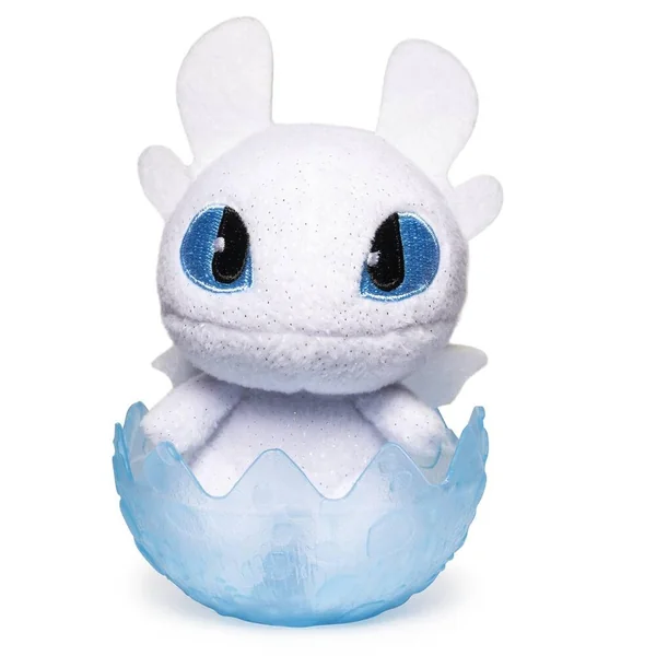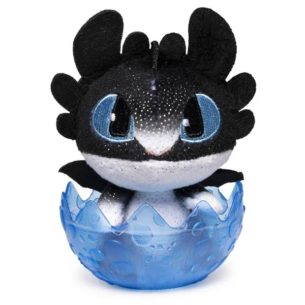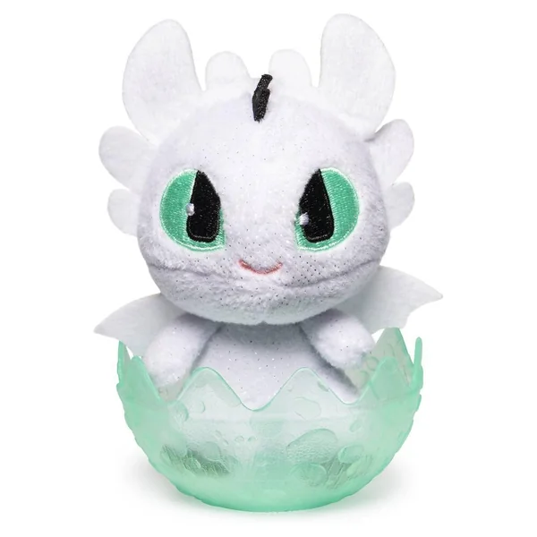 Peluche dragon stylisée dans un oeuf en plastique translucide. Magique, les peluches brillent dans le noir. Taille de la peluche : environ 10 cm. Modèle selon disponibilité. Vendu à l’unité.