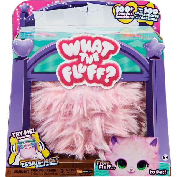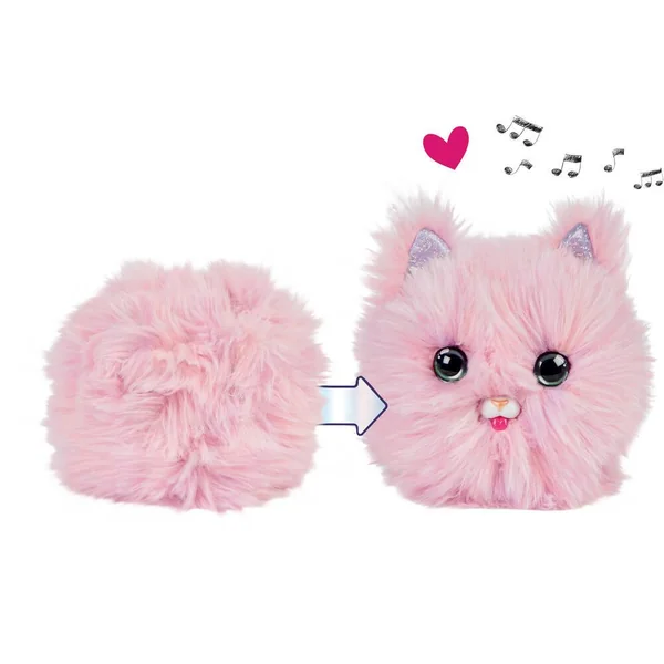 Une vraie boule de poils dont il faut s’occuper pour la voir prendre vie et découvrir ton animal. A l’ouverture de la boîte, occupe-toi de ta boule de poils pour l’aider à se transformer. Plus tu interagiras avec elle, plus vite tu découvriras ce qui se passe sous ses poils. De nombreux modes de jeux : Mode Caresses : caresse doucement ta peluche pour l’entendre ronronner, caresse-la plus vite pour la voir se mettre à danser – Mode Réactions : tapote le sol ou la table pour la voir trembler – Mode Mouvements : lance la peluche en l’air pour qu’elle effectue des bruits rigolos, fais-la rouler, elle crie de joie et incline-la pour l’entendre manger – Mode Berceuse : berce ta peluche pour justifier des ronflements et la voir reprendre sa forme de boule de poils. Plus de 100 phrases et interactions avec sa peluche toute douce. Peluche lavable à la main.