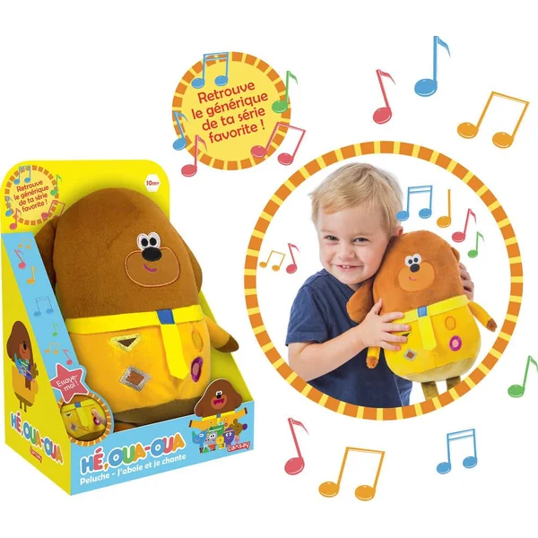 Appuie sur son badge et ta peluche aboie et chante !