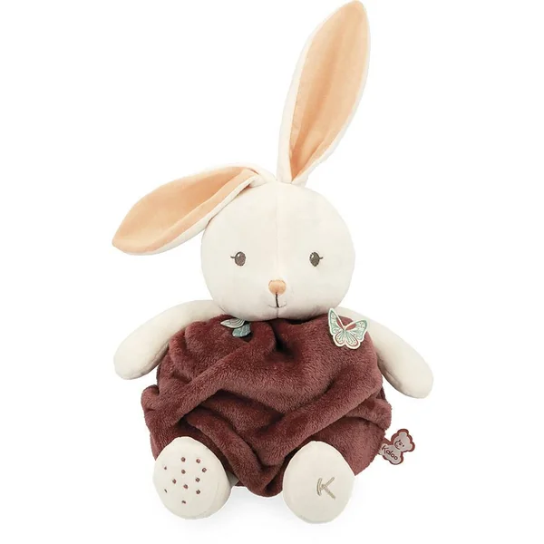 Bulle d’amour Lapin 30 cm apporte un vent de fraîcheur avec sa nouvelle couleur cannelle et sa nouvelle matière toute douce et moelleuse. Son adorable forme avec ses bras et ses jambes aide à la prise en main de bébé. Sa douceur et son sourire bienveillant en font un compagnon idéal pour votre enfant. Ses plumes et son papillon posé délicatement sur le cœur lui apporte une part de poésie et de légèreté. Présenté dans une jolie boîte cadeau, personnalisable par un message dans l’espace disponible sous le couvercle. Lavable en machine.