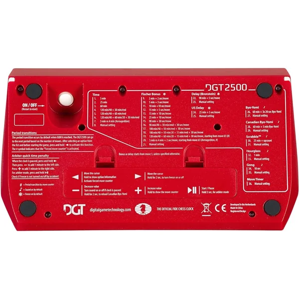 Une superbe horloge d’échecs développée pour répondre aux besoins de tous les joueurs. Avec 30 ans d’expérience et de nombreuses années de recherche, DGT a rendu le meilleur encore meilleur. Les améliorations font de la DGT2500 la meilleure horloge d’échecs disponible.