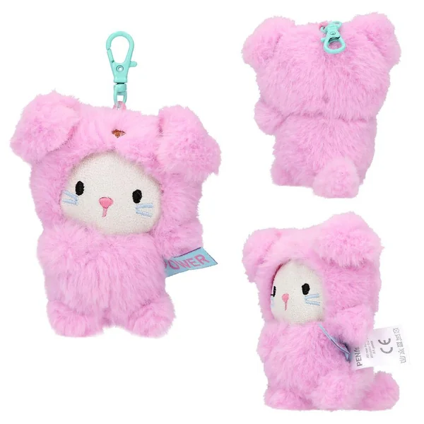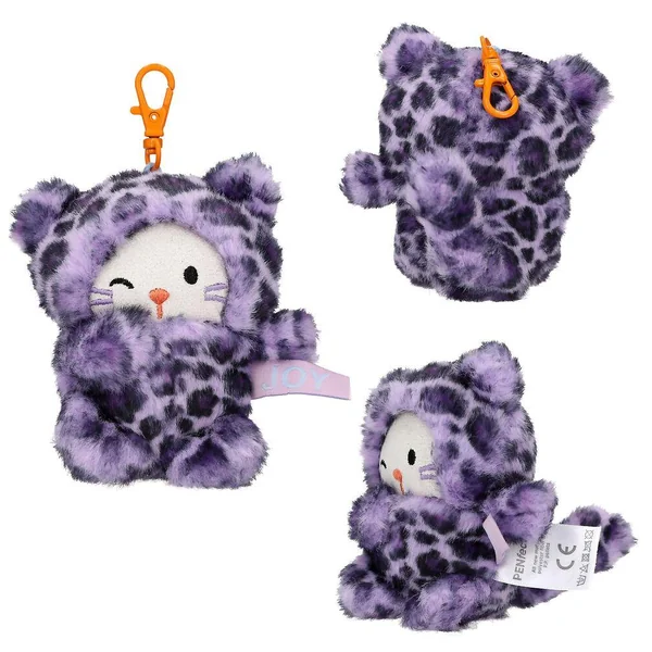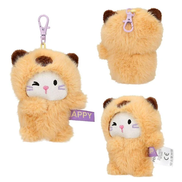 PENfection Porte-clés peluche chaton Tiny CrewCes adorables pendentifs chat en peluche de PENfection aux visages gris et rigolos et vêtus de combinaisons douillettes sont munis de mousquetons colorés. Petit plus : chaque petit chat porte une étiquette en tissu avec un mot exprimant une émotion. Six modèles de chat : combinaison brune capybara avec étiquette Happy, combinaison rose lapin avec étiquette Crazy, combinaison violette léopard avec étiquette Joy, combinaison turquoise ours avec étiquette Lucky, combinaison panda avec étiquette Lazy et combinaison rose chien avec étiquette Power. Taille de la peluche : env. 8 cm ; matière principale : 100 % polyester-