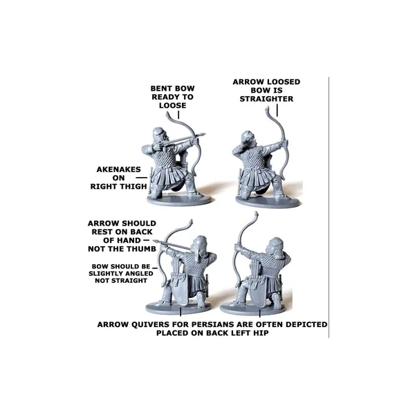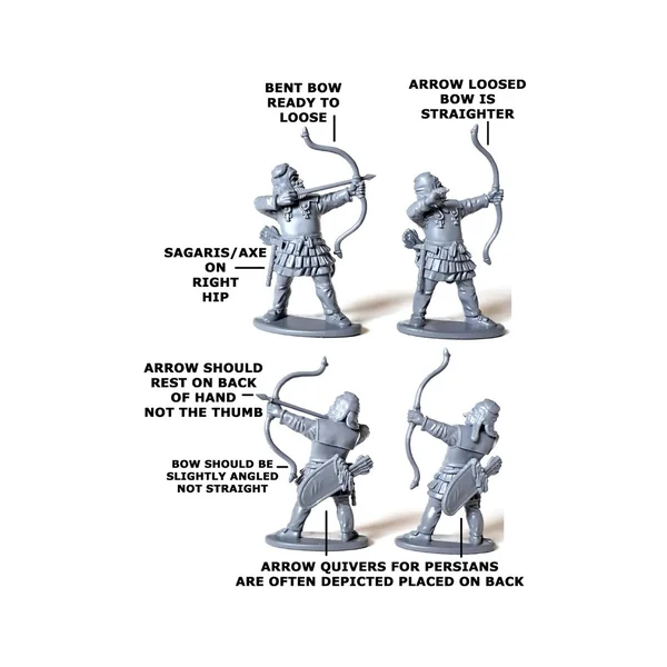 Cet ensemble comprend 30 figurines en plastique très détaillées. Que vous les utilisiez dans le cadre de l’Empire achéménide précoce ou tardif, les archers en armure forment une unité essentielle dans toute armée persane. Positionnez-les derrière un mur de Spara ou utilisez-les comme tirailleurs pour harceler l’ennemi, à vous de choisir.