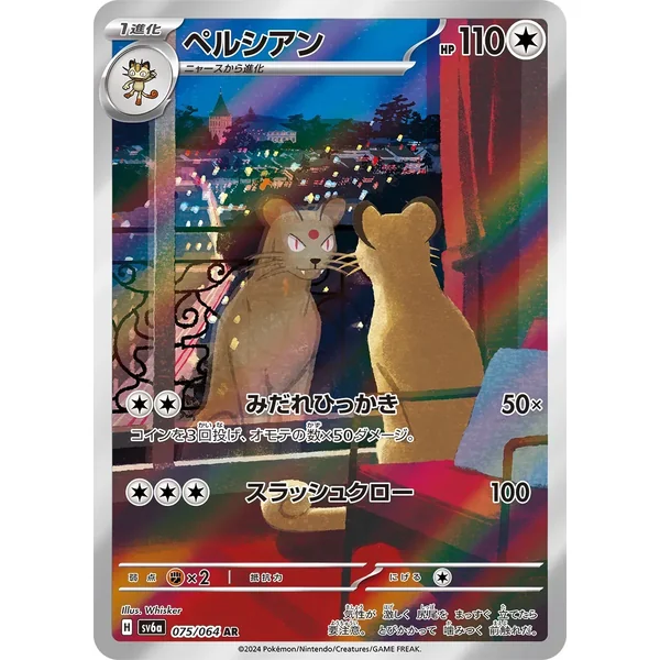 Découvrez Persian (sv6a075), une carte Pokémon de l’extension Night Wanderer, provenant du bloc Scarlet & Violet. Idéale pour compléter votre collection, cette carte Illustration Rare plaira autant aux collectionneurs qu’aux joueurs.