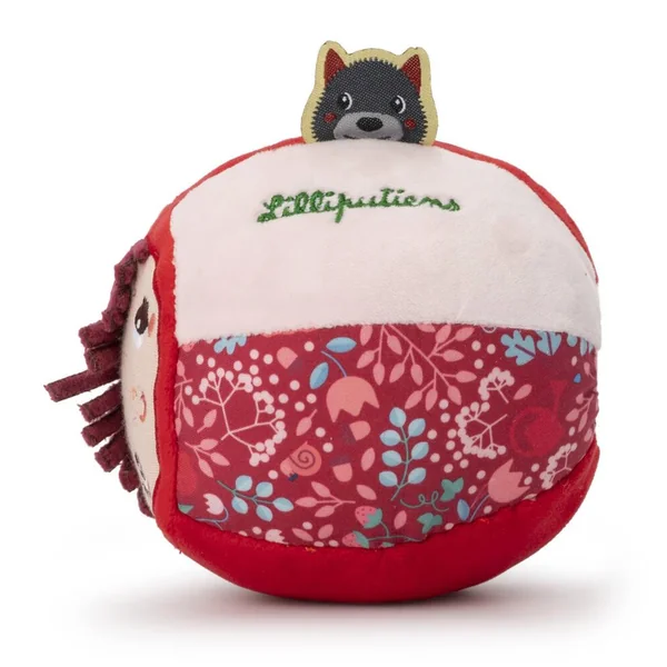 Cette balle de Petit Chaperon Rouge, avec ses couleurs vives et ses détails surprenants, est facile à saisir pour les petites mains et elle émet des sons de grelot et de froissement lorsqu’elle roule.