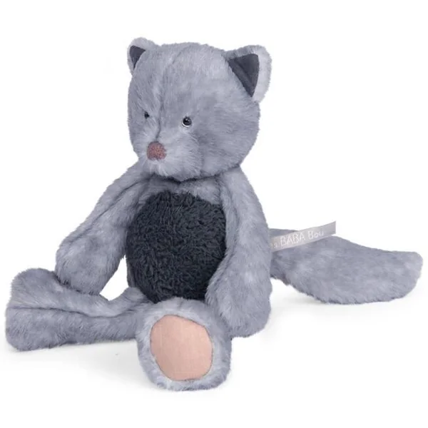 Pattes faciles à attraper, corps souple et pelage gris-bleu texturé, c’est le grand chat des Baba-bou. Ce compagnon aux poils tout doux, sera à coup sûr le meilleur allié de bébé pour le suivre dans toutes ses aventures.