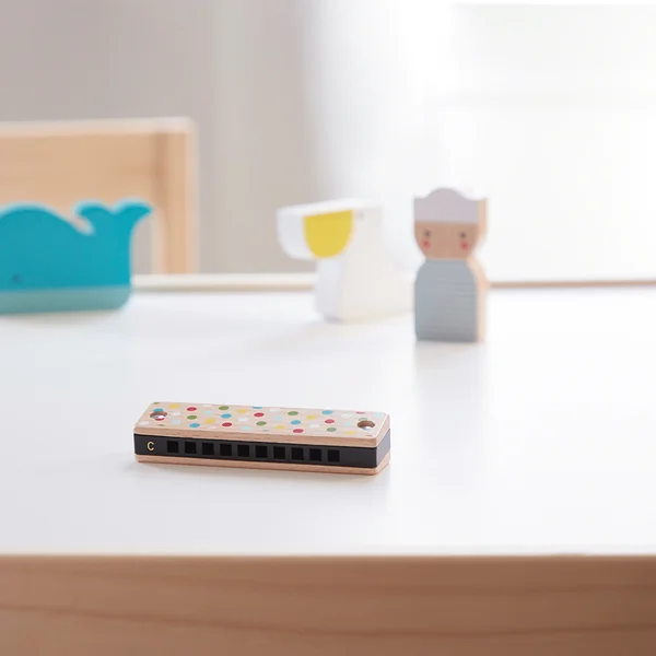Encourage your little musician with a cheerful harmonica. Decorated with colorful stripes and dots, it captures children’s attention. The package includes a sheet with instructions for playing, which will help your little one learn to play in no time, and they may soon surprise you with their own honky-tonk melodies. Made from sustainably sourced wood.