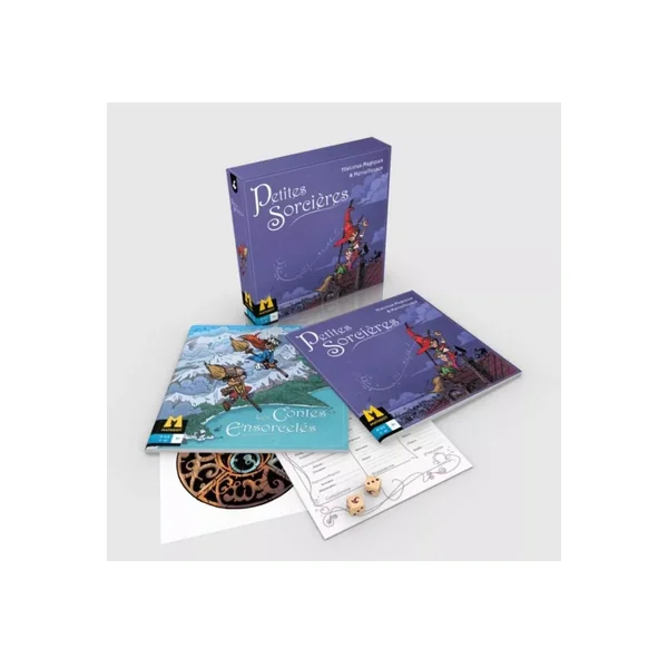 Petites Sorcières est un jeu de rôle coopératif et narratif conçu pour des enfants de 7 à 10 ans, centré sur des personnages de jeunes sorciers et sorcières vivants dans un monde imaginaire, le Pièce-Monde. L’univers de Pièce-Monde (hommage à Terry Pratchet) a la forme d’une pièce de monnaie avec son côté pile et son côté face. Vous y incarnez soit un magicien, soit une sorcière et vous pourrez découvrir les deux faces de votre monde et ses archipels. Un océan vaste et enchanteur d’un côté, une terre brumeuse et aride de l’autre. Petites Sorcières est une initiation idéale et on y trouvera tout ce qu’il faut pour lancer une partie immédiatement et se plonger dans des aventures délicieuses avec trois scénarios qui décrivent l’archipel des Singes des Neiges et l’archipel des Nuits sans fin.