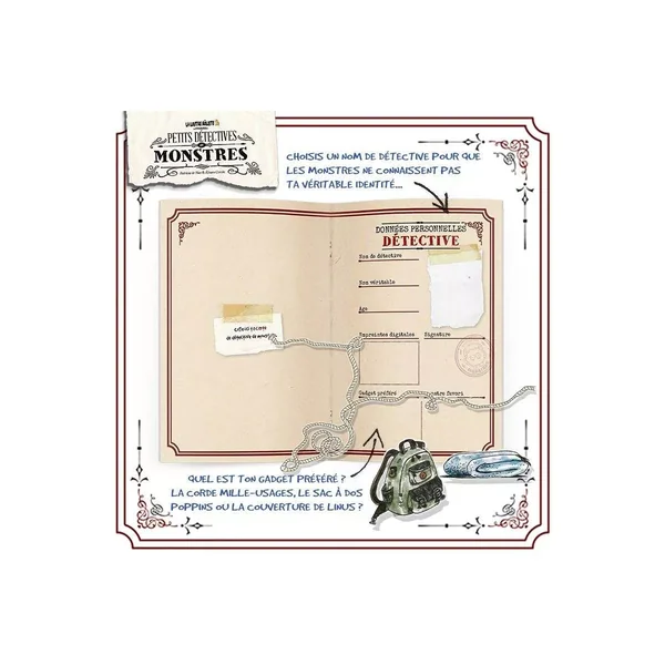 Proposé par lot de 4, le Carnet de Détective pour le jeu de rôle Petits Détectives de Monstres permet aux Petits Détectives de noter leur identité, de dessiner, de prendre des notes, de cocher les connaissances acquises et même de coller leurs médailles !