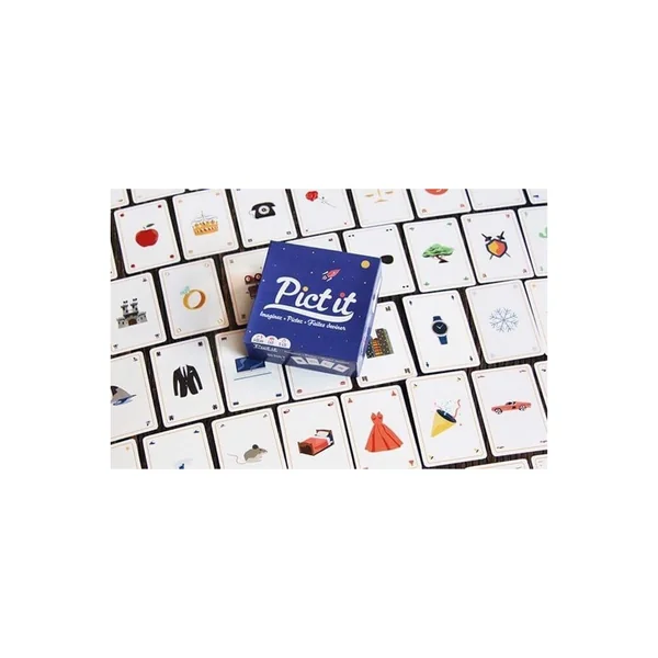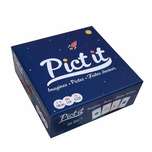 Pict it est un jeu d’ambiance qui consiste à faire deviner à ses adversaires des titres de films, chansons, séries, BD, lieux, jeux vidéos, personnages… grâce à une combinaison de 1 à 7 cartes picto.