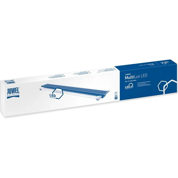 L’éclairage de secours Multilux LED est un luminaire standard dans les aquariums Juwel et est un équipement adapté pour tous les aquariums de la série Lido, Rio, Vision et Trigon. L’éclairage est équipé de deux tubes LED. Il s’agit d’une couleur de lumière diurne et naturelle, dont la combinaison crée un large spectre lumineux et un éclairage optimal pour les aquariums d’eau douce.