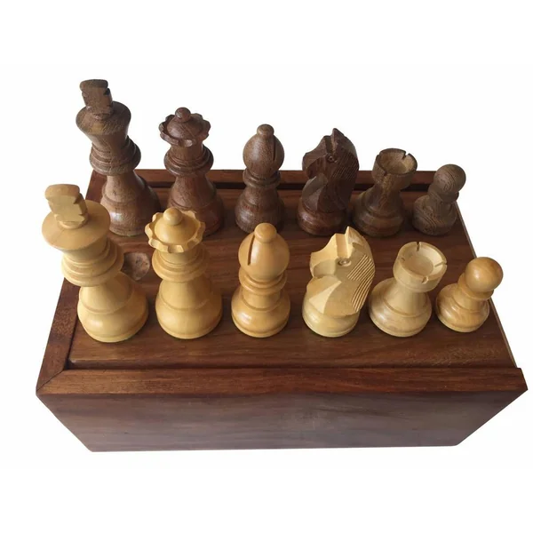 Très beau jeu complet de pièces d’échecs classiques fabriquées en sheesham et en buis. Les pièces sont plombées pour rajouter au confort de jeu. Le roi fait 76 mm. Le plateau correspondant à ce jeu devra être de 40 à 45 cm. Jeu complet de pièces d’échecs vendu seul, sans plateau, dans une boite en bois.