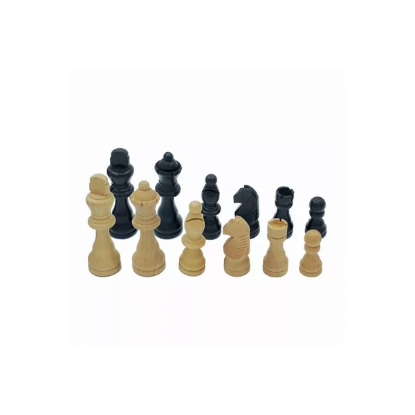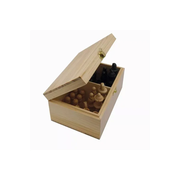 Contenu : 32 pièces d’échec en bois lestées et feutrées, Boîte de rangement en bois 2 compartiments.