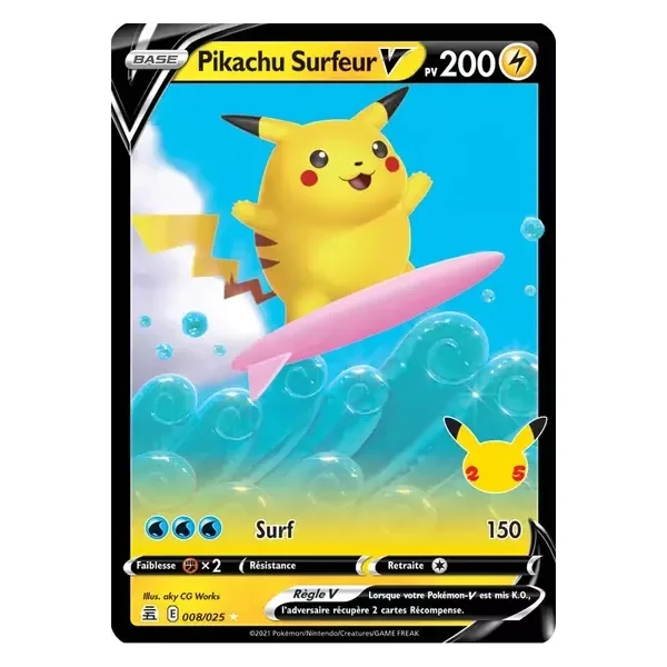Découvrez Pikachu Surfeur (cel008), une carte Pokémon de l’extension Célébrations, provenant du bloc Épée & Bouclier. Idéale pour compléter votre collection, cette carte Ultra Rare plaira autant aux collectionneurs qu’aux joueurs.
