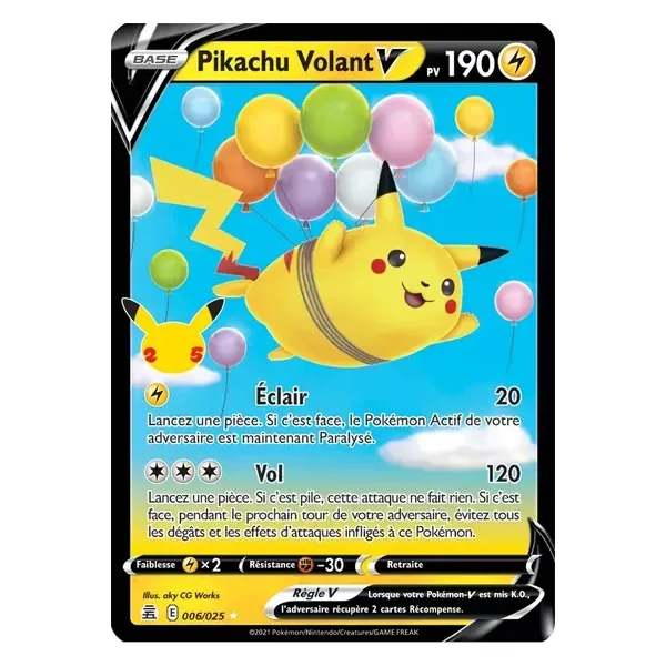 Découvrez Pikachu Volant (cel006), une carte Pokémon de l’extension Célébrations, provenant du bloc Épée & Bouclier. Idéale pour compléter votre collection, cette carte Ultra Rare plaira autant aux collectionneurs qu’aux joueurs.