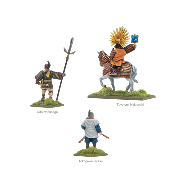 Ce set contient trois daimyos légendaires pour diriger vos forces japonaises. Chacun d’entre eux est moulé dans une résine très détaillée, et modélisé d’après l’un des trois « Grands Unificateurs » du Japon, sans doute les daimyos les plus performants de leur époque, mais ils peuvent tout aussi bien être utilisés pour représenter n’importe quel commandant japonais dans vos parties de Pike & Shotte. Toyotami Hideyoshi est représenté à cheval, tandis qu’Oda Nobunaga et Tokugawa Ieyasu sont à pied – tous sont magnifiquement armés et prêts à commander leurs forces au combat.