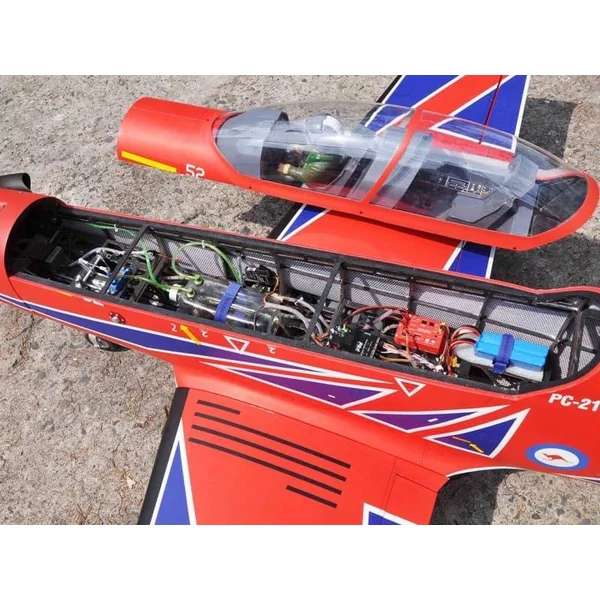 Pilatus PC-21 1962mm Black Horse – BH192Le Pilatus PC-21 de 1962mm d’envergure est un modèle réduit inspiré de l’avion d’entraînement avancé de l’armée de l’air. Construction en bois composite et finition haut de gammeLe Pilatus PC-21 1962mm Black Horse est fabriqué en bois balsa et CTP, une structure éprouvée offrant un excellent compromis entre légèreté et solidité. Sa finition minutieuse, avec des détails réalistes et une peinture d’usine de haute qualité, garantit une apparence ultra-réaliste en vol comme au sol. Motorisation thermique ou électrique !Ce modèle offre une flexibilité exceptionnelle en termes de motorisation. Vous pouvez choisir entre une configuration thermique avec un moteur à essence de 55 à 65cm3, parfait pour une autonomie prolongée et un son réaliste, ou une motorisation électrique alimenté par des batteries LiPo 12S, offrant une puissance élevée et une réactivité optimale. Caractéristiques Principales du Pilatus PC-21 1962m
