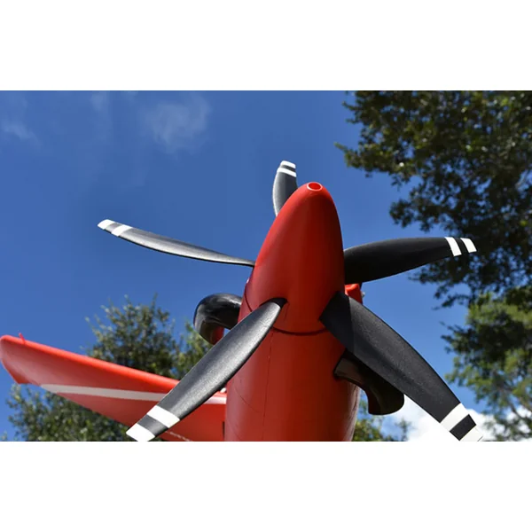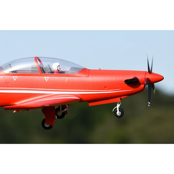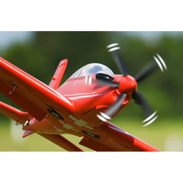 Un avion Piloatus PC-21 très réaliste. Il possède une hélice à cinq pales, un train d’attérrissage rétractable, des volets et un pilote à l’échelle faisant de lui un avion unique !