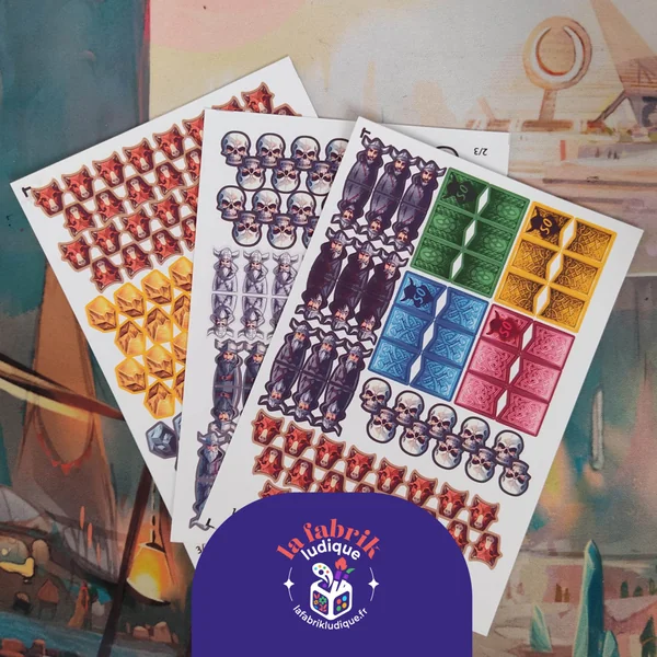- Stickers recto/verso pour vos ouvriers, ressources et marqueurs score