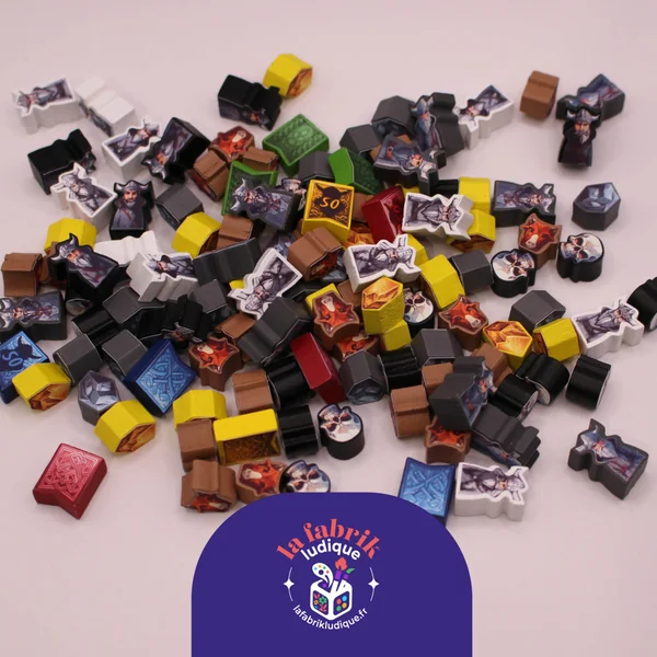 Les illustrations sont en partie réalisées à l’aide de l’IA générative, puis ajustées et retravaillées par «La Fabrik Ludique» afin d’obtenir un meilleur rendu sur les meeples.