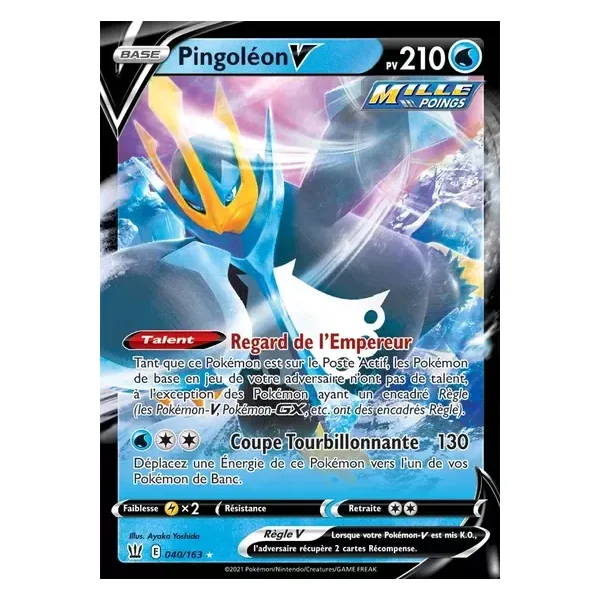 Découvrez Pingoléon (bst040), une carte Pokémon de l’extension Styles de Combat, provenant du bloc Épée & Bouclier. Idéale pour compléter votre collection, cette carte Ultra Rare plaira autant aux collectionneurs qu’aux joueurs.