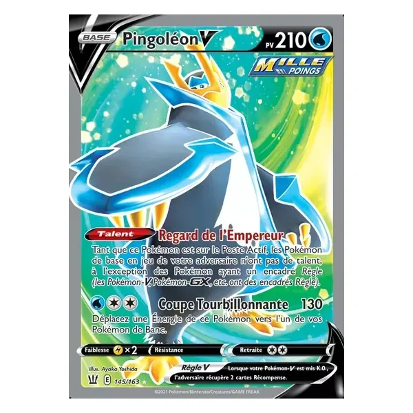 Découvrez Pingoléon (bst145), une carte Pokémon de l’extension Styles de Combat, provenant du bloc Épée & Bouclier. Idéale pour compléter votre collection, cette carte Ultra Rare plaira autant aux collectionneurs qu’aux joueurs.