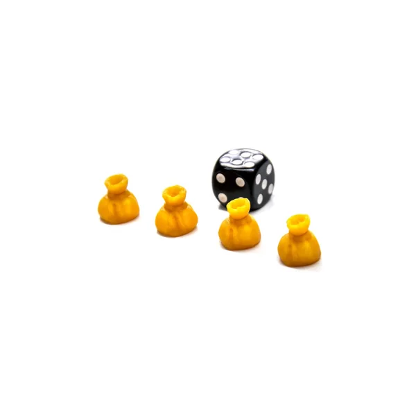 5 pions en forme de sacs d’or compatibles avec les jeux de plateau, de figurine ou de rôle.
