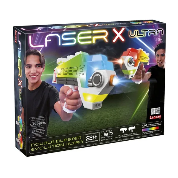 Avec Laser X Double Blaster Evolution, il n’y a plus de fil, plus de plastron, la cible est maintenant intégrée sur le pistolet ! C’est encore plus simple ! Constituez les équipes et c’est parti !