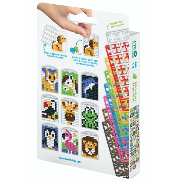 Placez la base par dessus le modèle imprimé, insérez les pixels sur la base selon la couleur du modèle (pas besoin de colle), le tour est joué! FAQ